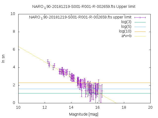 | upper limit SN vs magnitude graph from USNO-B1 catalog |
